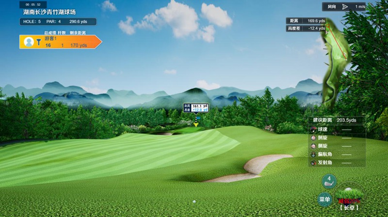 青竹湖高爾夫球場整體難度較大,具有一定的挑戰(zhàn)性,北京中通數(shù)字高爾夫的研發(fā)團隊做了完美還原,球道、樹、水、沙坑、果嶺均完美呈現(xiàn),體驗效果極好。